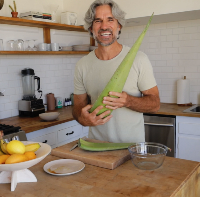 zander phelps heal my hernia coach holds aloe leaf for 30-day protocol to teach you how to treat hernia without surgery